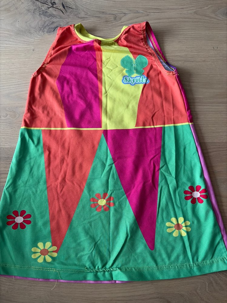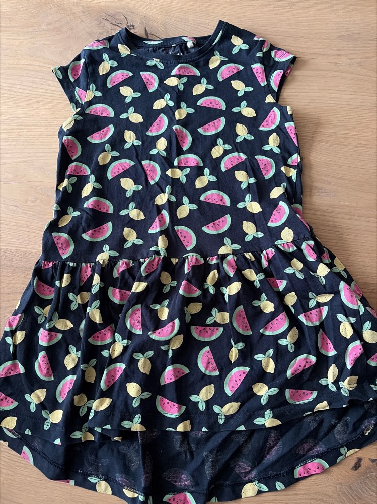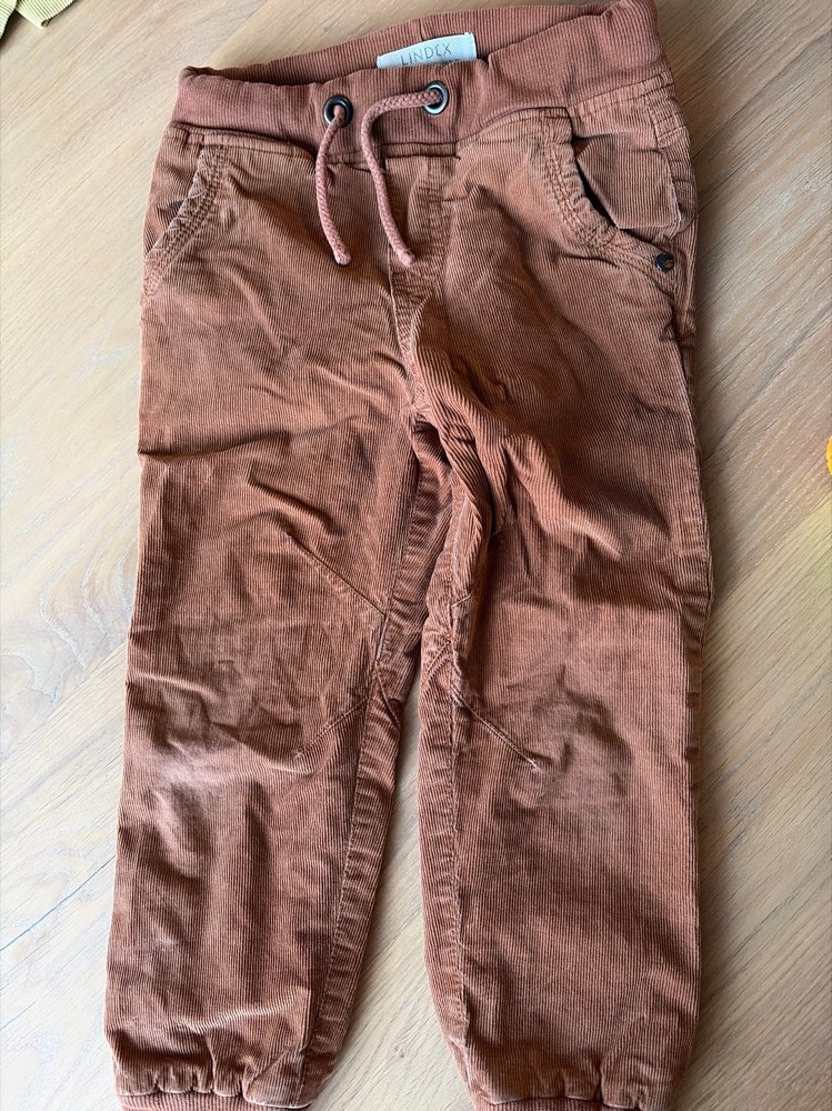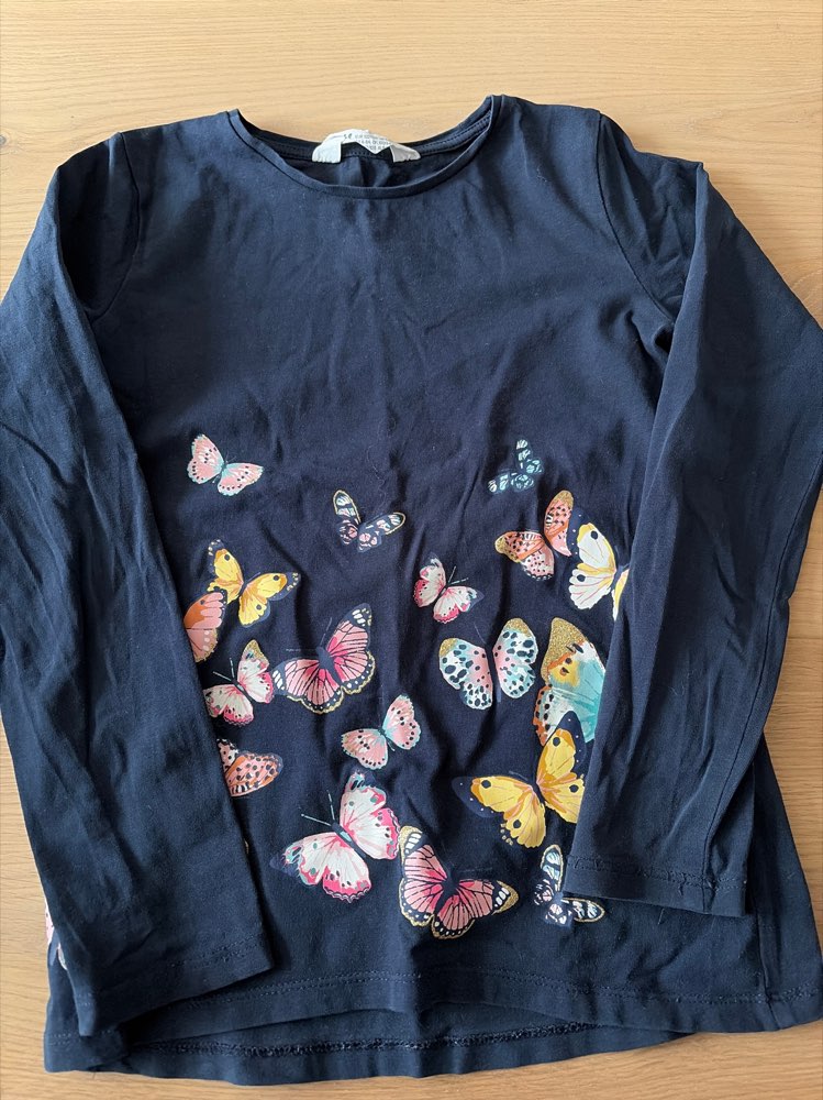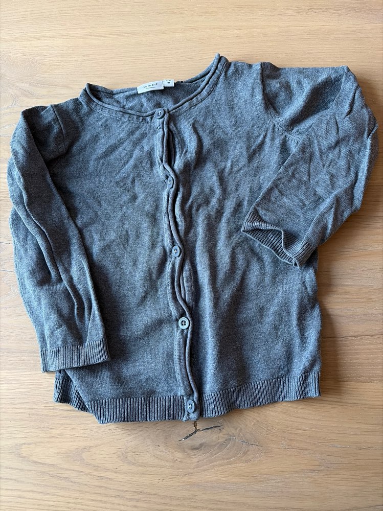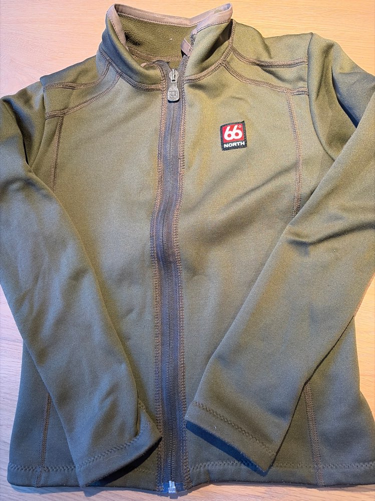 Heitir stærð 116 en er í raun 110. Smá hnökruð en fín sem leikskóla peysa.